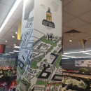 This concept continues inside. Murals and illustrations depict well-known Cologne locations such as Cologne Central Station, the University of Cologne and Rudolfplatz, to name but a few. They are not only decorative, but also offer visitors a visual journey through Cologne. These elements also create a link to the everyday life and attitude to life of the people of Cologne. This allows customers to identify with the market and connect emotionally. At the same time, the elements give the store a unique atmosphere that sets it apart from other discount stores.