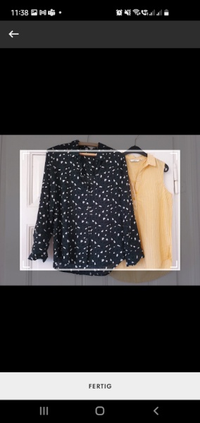 The Bonprix app recognized both garments – even when they were partially hanging on top of each other – and gave me two individual result lists below each other that matched the two products well.
