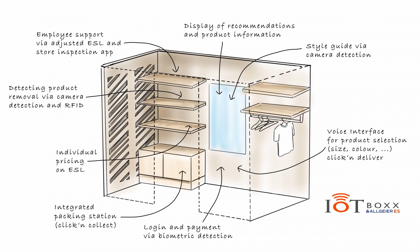 This concept is based on the Amazon Go Store in Seattle, which offers camera-based recognition of products and direct payment using its own app. The assignment of the customers to the collected products is done by facial recognition. With the IoT BoxX, we would like to demonstrate that such a scenario is not only possible for market-dominating companies from Silicon Valley or Asia but is also becoming an attractive option for normal retailers. For both the consumer and the employee, this saves a lot of time and increases the convenience considerably.