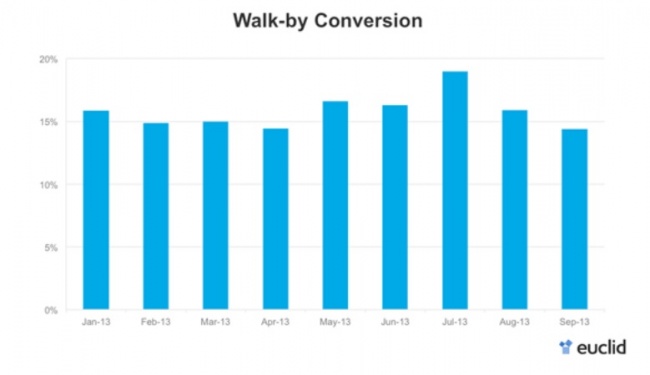 Euclid, the leader in in-store retail analytics, today released its U.S. Retail Benchmarks for September 2013. Euclid's data on 20 million domestic shopping sessions during the month shows that walk-by conversion and in-store engagement slipped versus August as consumers became more cautious and less compelled to shop after Back-to-School spending.