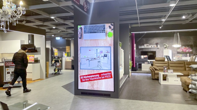 Getting started is easy but what comes next? “We are often the second port of call,” says Chris Riegel meaning that retailers who have tried to run their own retail media sooner or later end up with the professionals. Felix Schmidt echoes this view: “Many retailers do collect plenty of data about their shoppers but hardly use it.” Patrick Schröder, Director Sales Retail & Digital Signage at dimedis, shares this view: “Successful retail media requires precise data that should be available in real time, if possible.” In real time? This, of course, also presupposes a very high-performance infrastructure, a sales team or at least a connection with such existing advertising systems as Programmatic Advertising. Beyond this, these have to be monitored, for instance to ensure “no advertising for a dating App is screened in the baby department” says an experienced consultant who has observed this occurring with a potential customer. So it does not come as much of a surprise that Poco recently enlisted not one but three professional firms to install its retail media network. Dimedis supplies the screens, MoM strikes a balance between advertising and their own advertising and the OneTechGroup sees to the technical infrastructure. And this works for Poco not only on 500 screens but also – on demand – on 125,000 electronic labels on shelves.
